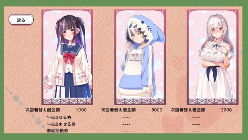 最初のうちはペナルティといっても緩めの私服や部屋着などに着替えていきますが度重なる借金を重ねていけば水着やきわどい衣装を着ることに、