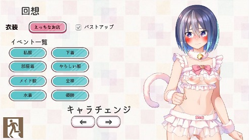 回想にて立ち絵衣装変更・会話イベント視聴が出来ます。