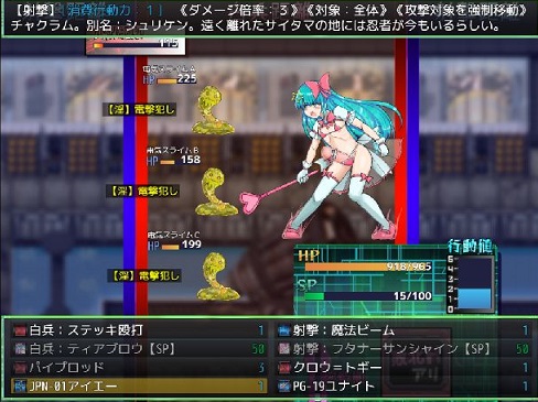 〈JPN-01アイエー:全体射撃攻撃・敵を移動〉は通常戦において便利。