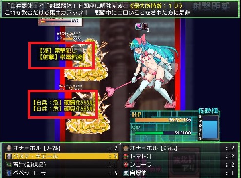 なお通常のHイベントや敗北Hではショーコ(アラキサメ含む)の大量射精の量がエロステータスで表示されます。