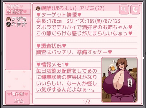 準備が出来ればメニュー画面でのターゲットリストで「準備OK」の表示、これで催眠勝負を仕掛けることができます。