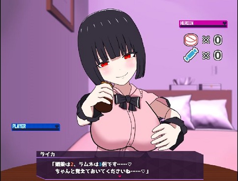 初回プレイの難易度はEASY、瓶の中身は媚薬2個ラムネ3個で最初の選択権はプレイヤー側にあります。