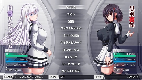 ゲームクリア後は現在のステータス・Hステータスが引き継ぎ可能