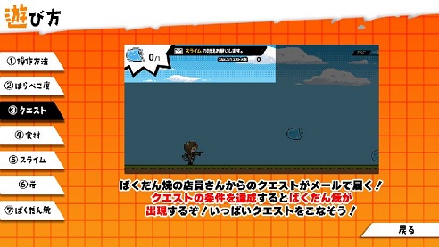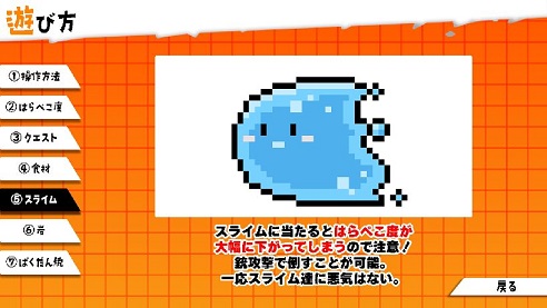 ただしジャンプ操作で食材を取り逃がしたり、スライム退治が出来ずに張り付かれると・・