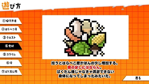 途中にある食材は微量満腹度回復(ほんとに微量)。