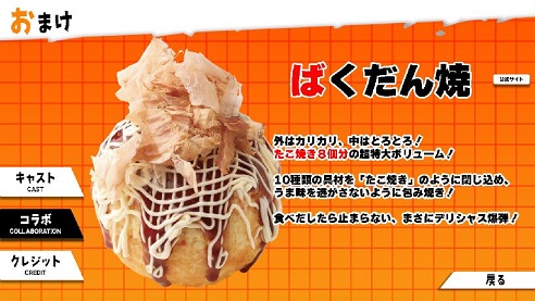 今作のゲームで紹介されている「ばくだん焼」は主に東京都などで展開されているチェーン店、