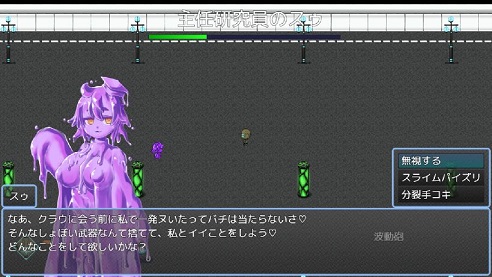 スライム化した研究主任スゥをターゲットとして敵の倒し方を教わります。