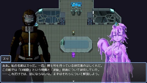 目の前にいる女性研究員スゥに触れて彼女はスライム化、この宇宙船内の騒動を引き起こしたのは