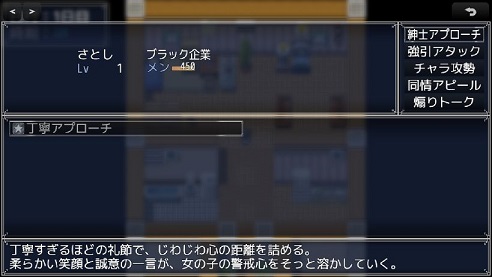 戦闘シーンでは3ターン制限、それまでの間に相手を口説いてライフを0にすればナンパ成功、